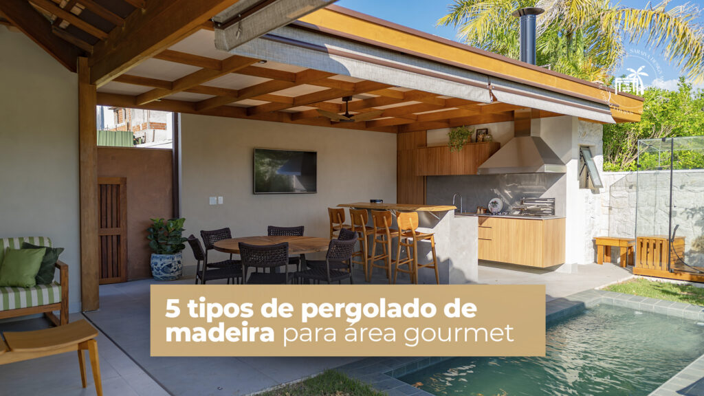 O pergolado com cobertura é uma das opções mais funcionais para a área gourmet. Ele oferece proteção contra sol intenso e chuva, permitindo o uso do espaço durante todo o ano.